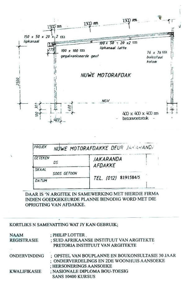 Alle dakke word volgens Munisipale Regulasies opgerig
