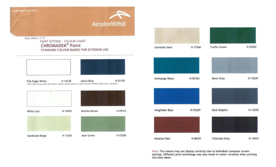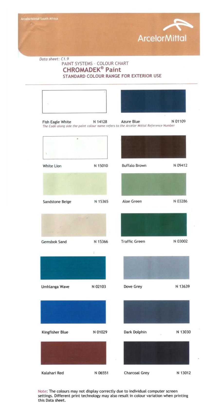Chromadek Kleurkaart van Dakplate wat beskikbaar is